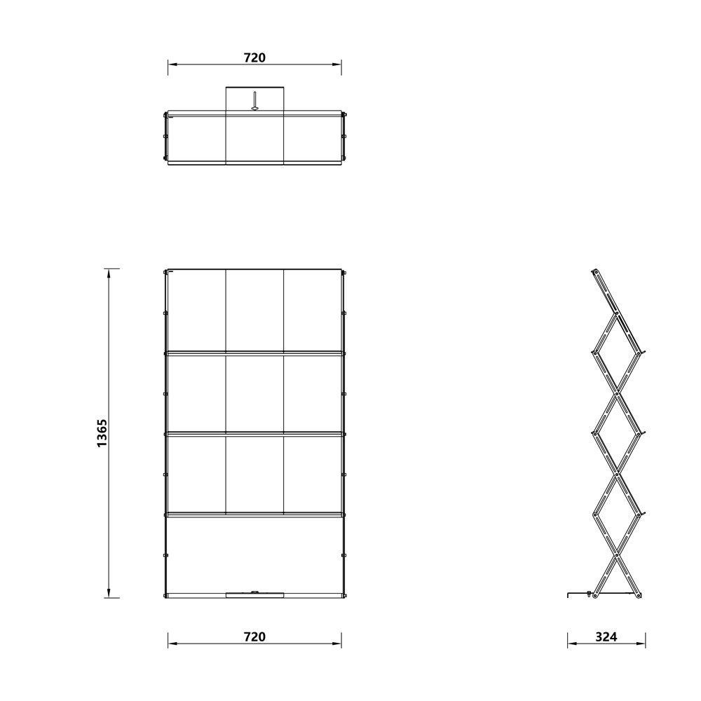 Disponible à 3-6-9 pochettes pour catalogues, il est très facile à assembler, et il est autoportant et modulable.