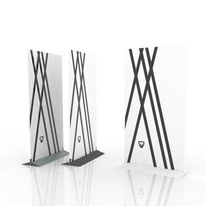 Matériau recommandé pour le panneau : sandwich de 20 mm, léger et composite. Adapté aux points de vente, aux petits stands, comme totem de signalisation, mais aussi comme porte-silhouette pour un événement.